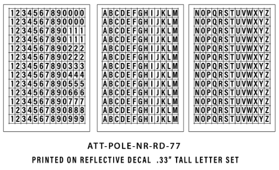 Includes 1 set of Reflective Numbers 0-9 and A-Z